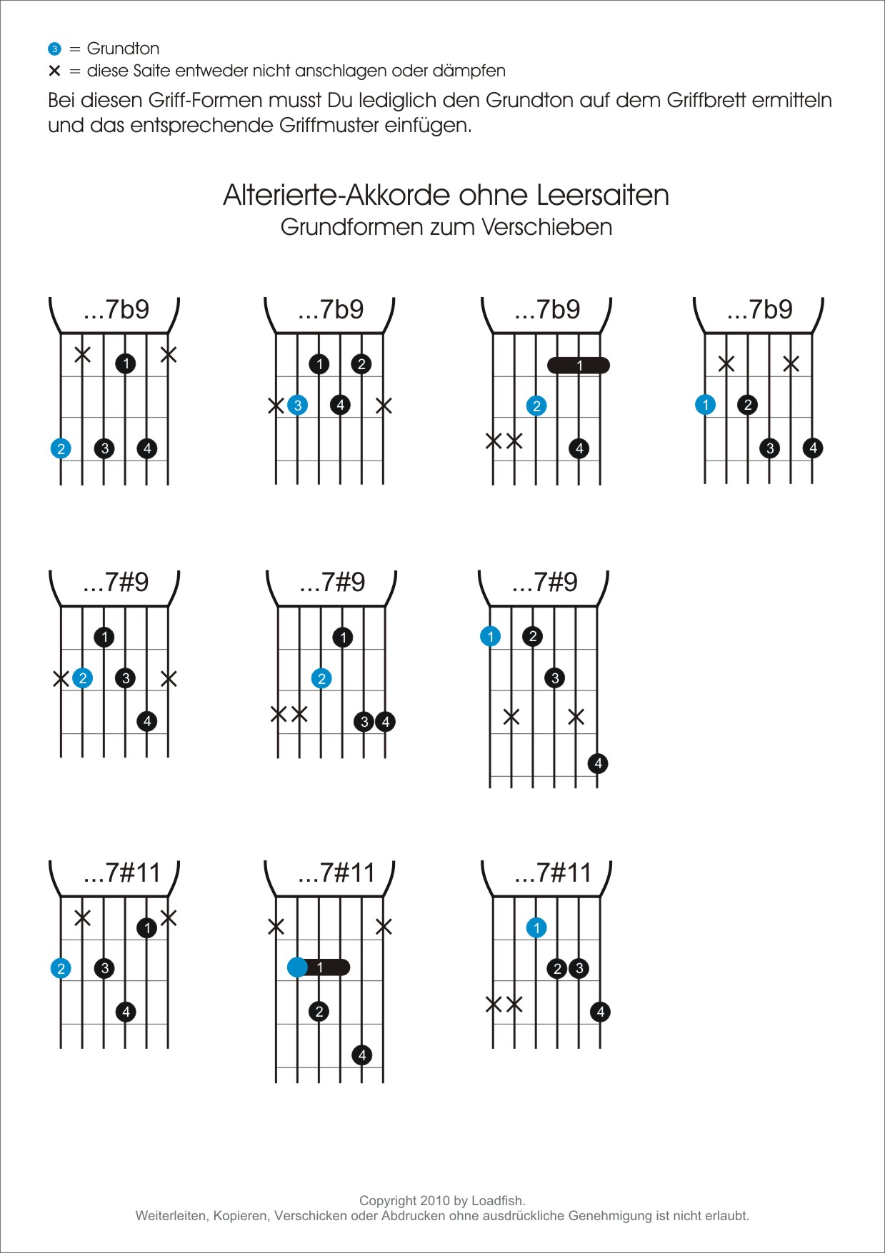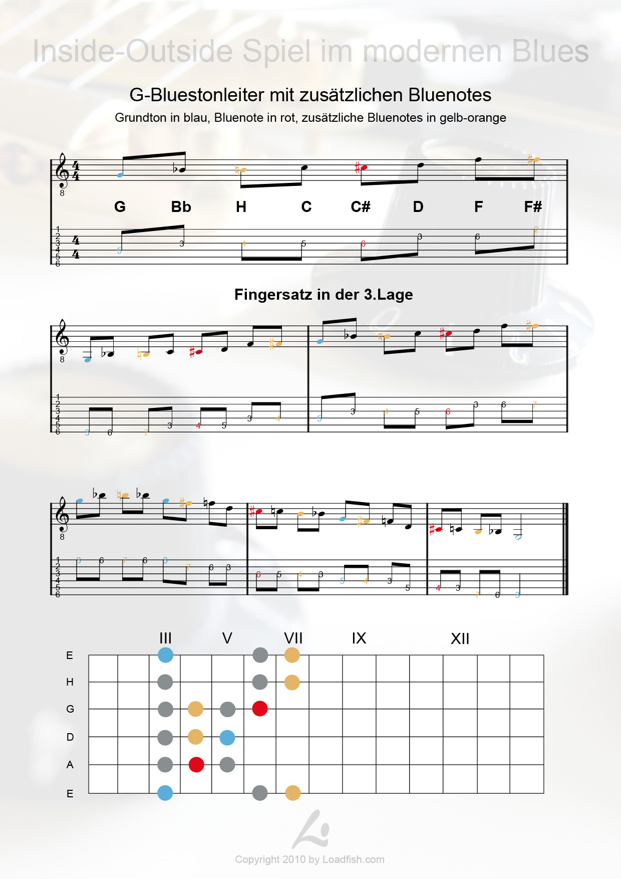 Wichtige Tonleitern und Fingersätze in Noten - Tabulatur - und Grafikdarstellung